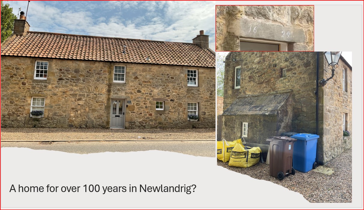 The entire village was owned by David McKinlay of 25 Royal Terrace, Edinburgh in 1855. Oddly enough the village of Newlandrig in 1841 was called Newlandburn in the 1851 census, and in 1855 it was known as 'Newlandtown'. The name then reverts to Newlandrig thereafter. This threw me for a while before realising that they all referred to the same place.